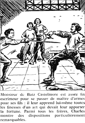 | He was the first to take an interest in d’Artagnan’s life (he had served under the famous musketeer), and he wrote a three-volume apocryphal memoir of the latter. | |