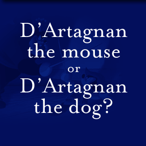 The first is American, but this representation of our hero as a mouse can only do him honor, as this mouse is none other than Mickey, the most popular, cunning and intelligent of Walt Disney's characters. At the same time, the televised dog version –Dogtanian– embodies loyalty, confidence, reason and an enterprising spirit. The cartoons have chosen as their animated version of d'Artagnan the animal mascot most likely to attract a young public. In the manga version, d'Artagnan remains a young man close to the illustrations found in books.