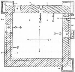At its base, the structure measures 13.3 meters by 12.2 meters, and the walls are 1.6 meters thick. |