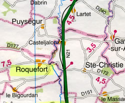 Located in the community of the same name, Chateau Roquefort rises proudly out of the foothills on the left bank of the valley of the Gers, 18 km north of Auch (the capital of the department). Constructed in the thirteenth century at the limits of the County of Armagnac, the castle certainly guarded the important communication route that passed at its feet, as an outpost facing the English castles of Sainte Christie and Casteljaloux.