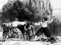 C'est d'ailleurs par la recommandation du père de d'Artagnan, de se battre en duel, que débute le roman d'Alexandre Dumas – Les Trois Mousquetaires - qui se déroule sous le règne de Louis XIII et de Richelieu.
