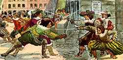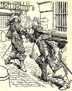 Cette admiration, que partageaient ces deux hommes de pouvoir pour les duellistes, trouvait à s'exprimer dans l'affrontement que se livraient les Gardes du Cardinal et les Mousquetaires du Roi. Indirectement, Louis XIII et Richelieu l'encourageaient. La situation est tellement paradoxale qu'Alexandre Dumas ne peut s'empêcher de l'utiliser comme principal ressort de son roman quitte à faire naître d'Artagnan vingt ans plus tôt. L'occasion était trop belle !
