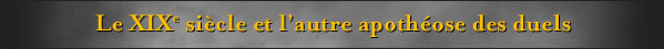 Le XIX° siècle apporte de grandes modifications au duel, sans pour autant en modérer la pratique. Aux côtés de l'épée, apparaissent le sabre et surtout le pistolet.