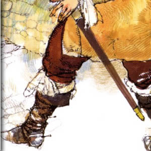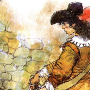 | Comme Dumas le dit lui-même, il a tracé le portrait de d’Artagnan « d’un seul trait de plume ». Une description précise sur quelques détails - pommettes, mâchoire, nez - mais qui laisse le champ libre à l’imagination pour tout assemblage de ces détails. |