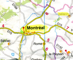 Le château de Balarin (Balerin ou Valerin comme on le trouve aussi écrit) se trouve à 4,5 km au Nord Est de la commune de Montréal. Il date du XIIIe siècle et appartenait alors au Condomois, sous domination anglaise. « Il faisait partie de ce système de petites forteresses, toutes semblables, échelonnées le long de la frontière, se raccordant à l’est aux châteaux de Luzan, de Beaumont, de Larressingle, de Pouypardin, de Fousseries et de Goalard au dessus- de Condom, et à l’ouest à la place forte de Montréal, bastide nouvellement fondée (1265). » Philippe Lauzun