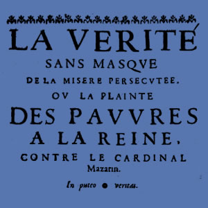 Le cardinal appréciait l’efficacité et le courage de d’Artagnan. « Etre Mazarin » n’était pas facile en ces années-là, alors qu’un arrêt du Parlement promettait une récompense considérable à qui arrêterait Son Eminence et le livrerait à la justice. On venait de commencer à mettre en vente sa bibliothèque. Les « Mazarinades » aux propos diffamatoires et orduriers contre le cardinal et contre la reine inondaient la capitale.