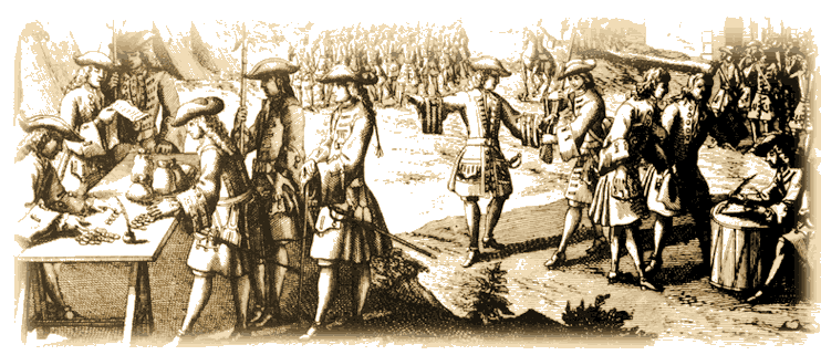 « Le Roi accorde à un Mousquetaire un emploi d’officier ou la possibilité d’acheter une compagnie, voire un régiment, lorsque le rapport du capitaine-lieutenant ne contient que des éloges. Ce fait contribue à entretenir une émulation permanente au sein de la Compagnie. » Arnaud Jacomet. |
